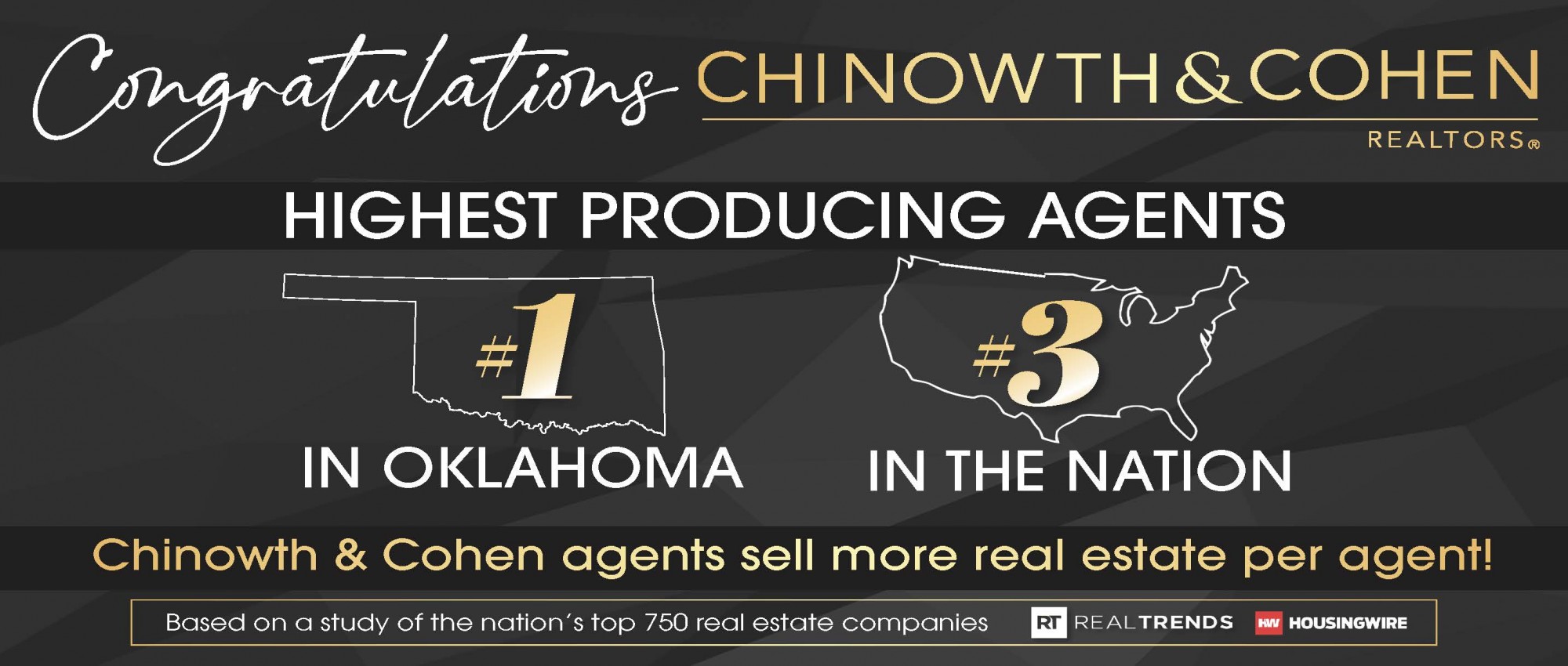 According to a recent study, Chinowth & Cohen REALTORSĀ® has the highest producing agents in Oklahoma and ranks third nationally.
