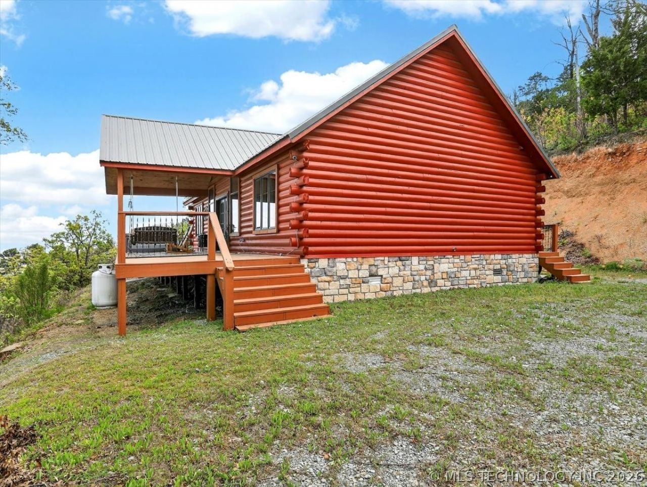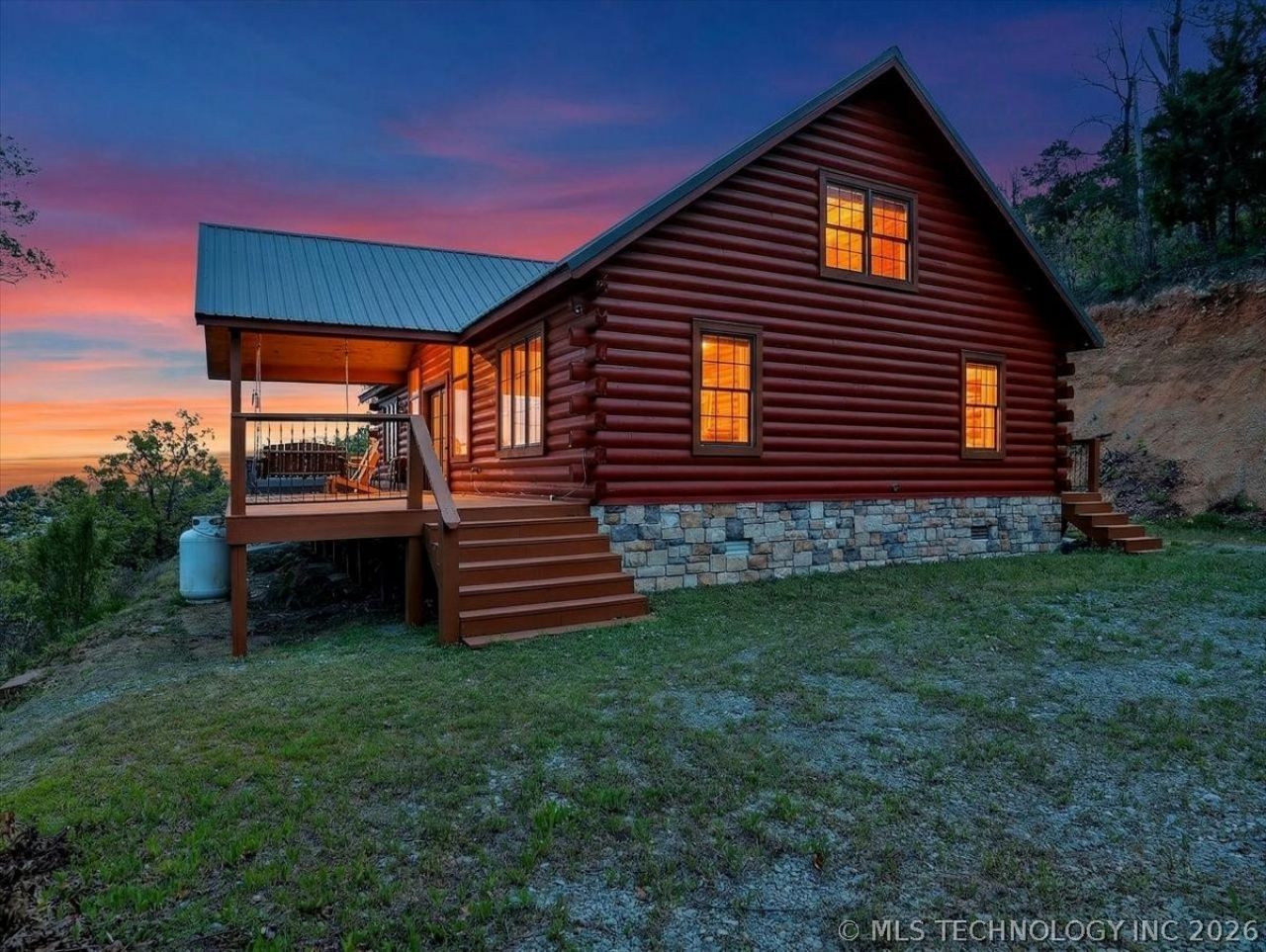Escape to your own private retreat with this stunning cabin overlooking beautiful Sardis Lake-where breathtaking, year round views set the tone for peace & relaxation. Tucked away in a secluded setting just a few miles from the water, this property offers the perfect balance of privacy and convenience for lake lovers and outdoor enthusiasts alike. Step onto the expansive wrap-around porch and take in the panoramic scenery, or unwind on the covered front deck complete with hot tub. An outdoor shower adds a touch of rustic luxury, perfect after a day spent on the lake or exploring the surrounding mountains. Inside, you'll find a warm and inviting cabin atmosphere with thoughtful touches throughout. Both bedrooms are positioned to capture incredible lake views, creating a serene space to wake up and wind down. The spacious primary suite features a spa-like bathroom with an oversized walk-in shower and a striking copper sink that adds character and charm. Whether you're searching for a weekend getaway, vacation rental opportunity, or a full-time escape, this one-of-a-kind cabin delivers unforgettable views, privacy, and comfort-all just minutes from Sardis Lake.