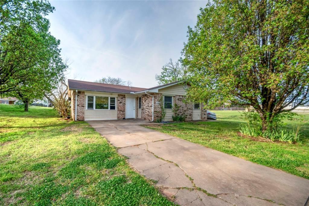 Tucked away as the last home on a quiet street in Stroud, this inviting property offers a peaceful setting with plenty of flexible living space. Featuring 2 bedrooms and 2 full bathrooms, the home also includes two spacious living areas-one of which is currently being utilized as a potential third bedroom with a small closet conveniently located off the laundry room. The layout provides a comfortable flow, with a large front living area just off the entry, leading into a kitchen and dining space that opens to a second living room. Down the hallway, you'll find an additional bedroom and full bathroom, with the generously sized primary suite at the end. The primary bedroom features a private bath and direct access to the covered back porch-perfect for enjoying the serene surroundings. Situated on a large end lot, the property offers ample outdoor space, including a covered back porch and a storage shed for tools and equipment. A new roof was installed in late 2017, adding to the home's value and peace of mind. Don't miss your opportunity to own this versatile and well-located home-schedule your private showing today!